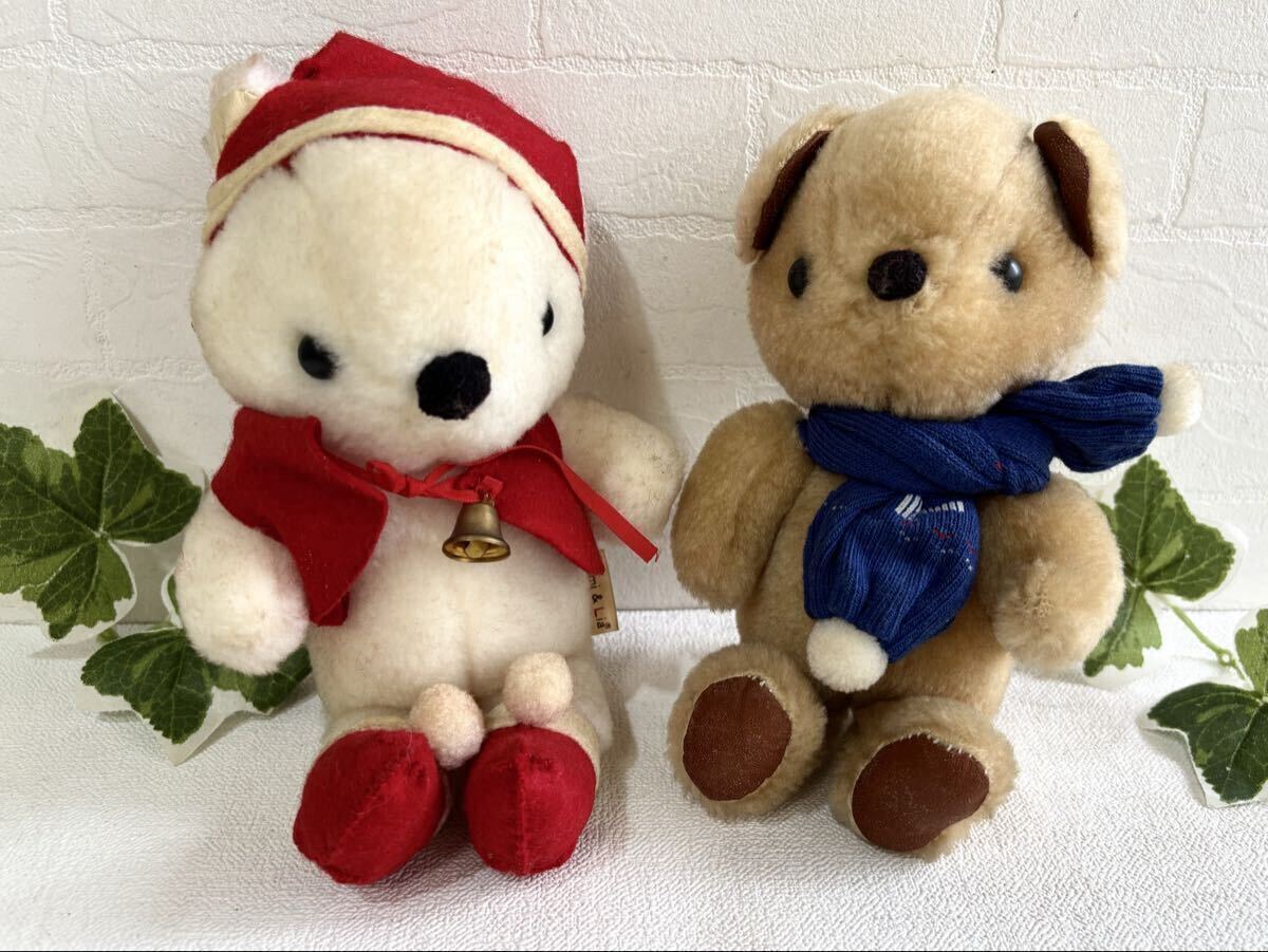 > 昭和レトロ Familiarファミリア ぬいぐるみ2体 ファミちゃん&リアちゃん 青いマフラーとサンタの衣装 クリスマスバージョン 長期保管品