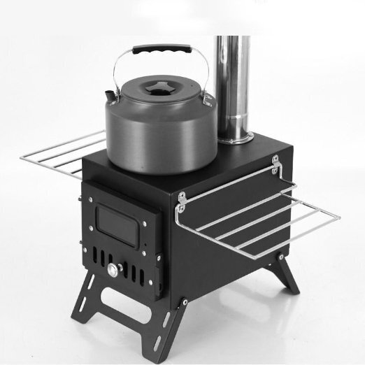 - 屋外薪ストーブ 煙突付き 折りたたみ 耐熱ガラス窓付き 棚付き 組立式 焚き火台 暖房 アウトドア キャンプ