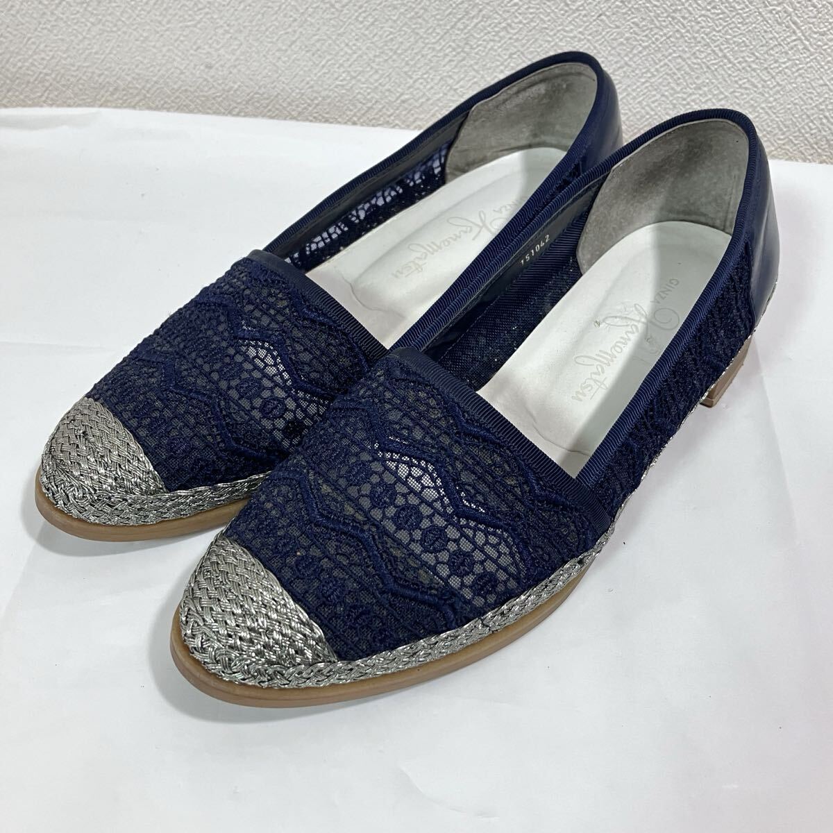 > 美品◎GINZA Kanematsu 銀座かねまつ メッシュ レース フラットシューズ パンプス ローヒール ネイビー 23.5cm シースルー