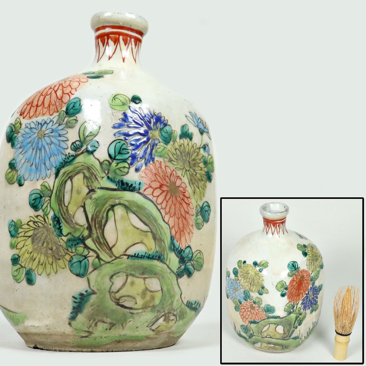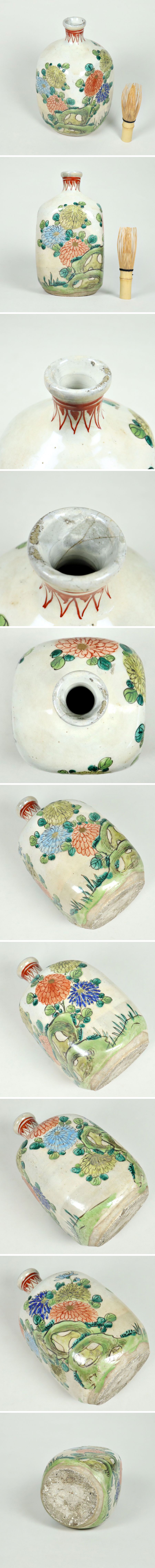 > 江戸後期 岩谷焼 花文 保命酒徳利 鞆徳利 備後 鞆の浦 酒器 陶磁器 骨董品 美術品 0604peyN