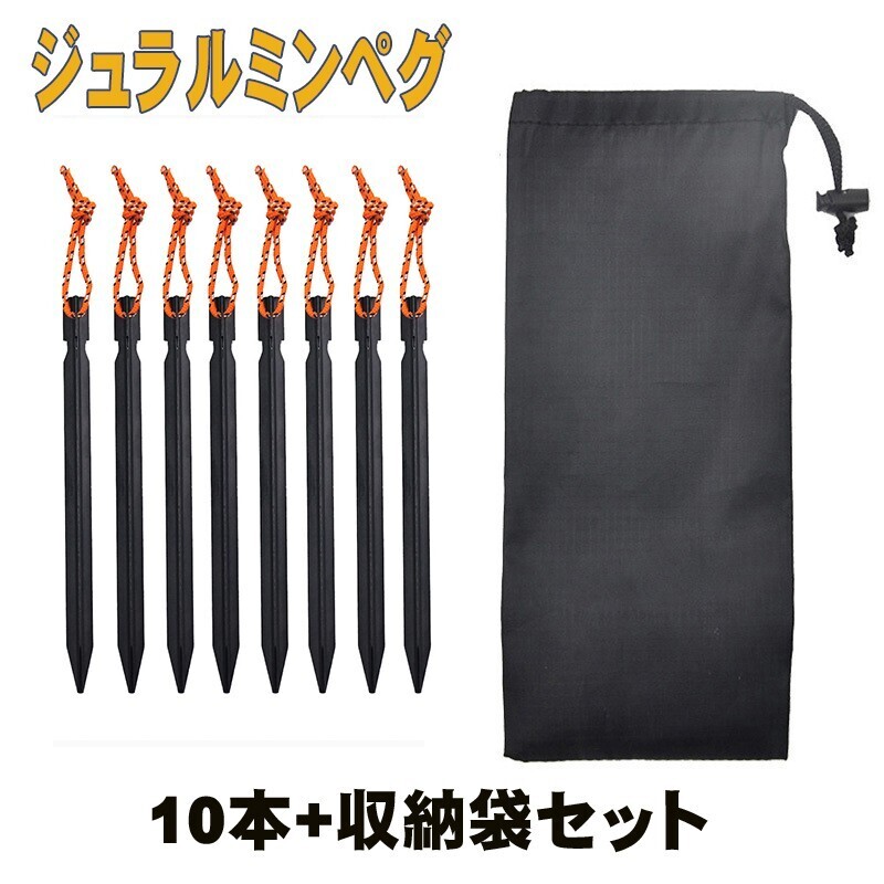 - ペグ ジュラルミン ブラック 軽量 Y型 10本セット テント タープ レジャー 18cm ロープ付き(Y-127)1