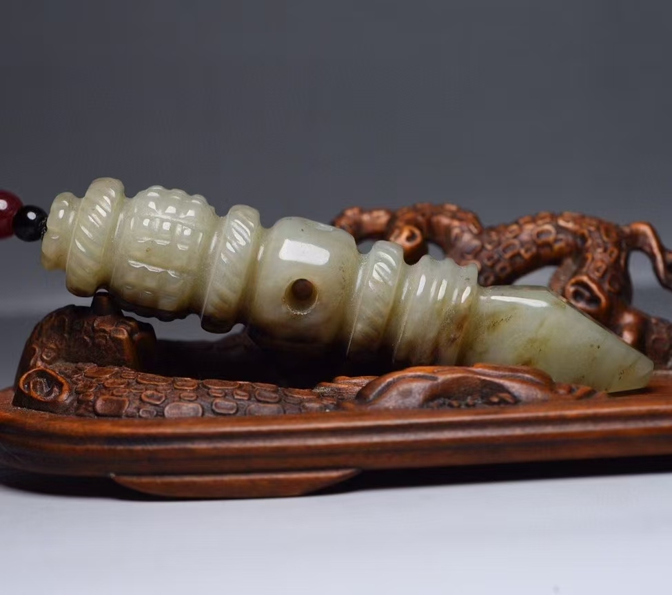 - 旧蔵 清時代 和田玉彫 法器 仏具 極細工 古擺件 古置物 中国古玩 骨董品 時代物 稀少唐物