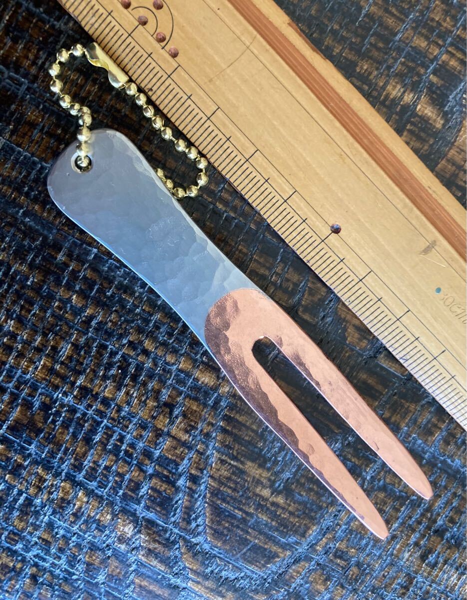 - 銅工房手作り グリーンフォーク二本歯 コンパクトなサイズで扱い易い お名前やイニシャル等刻印します