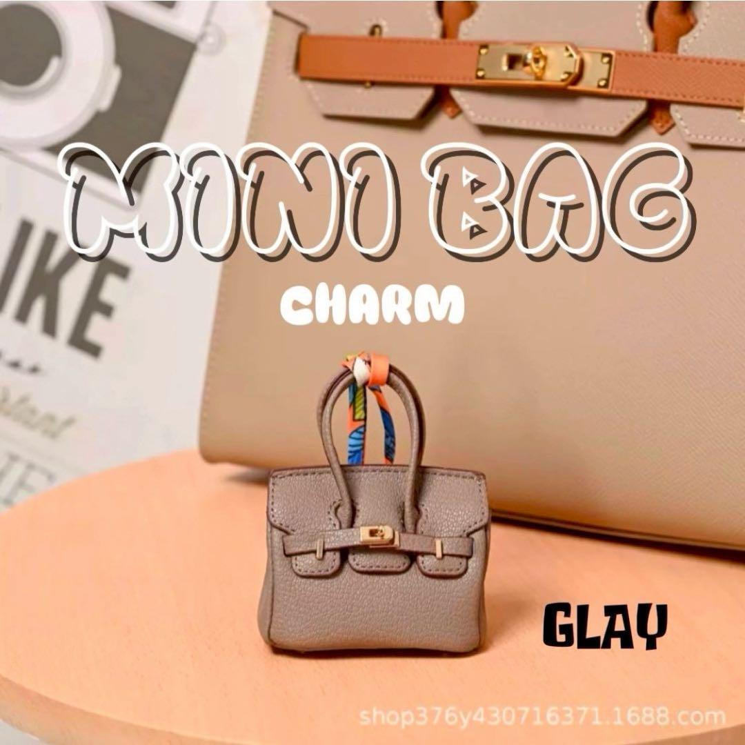 - 小物入れ バッグ型チャーム キーホルダー ストラップ イヤホンケース グレー