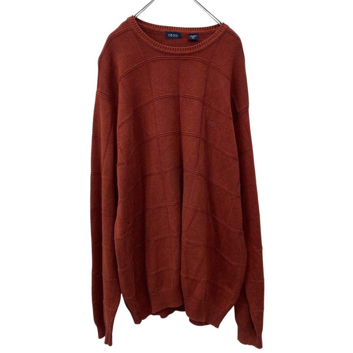- a710-5196 IZOD コットンニット セーター XL エンジ アイゾッド プルオーバー コットン100% 刺繍ロゴ シンプル 秋物
