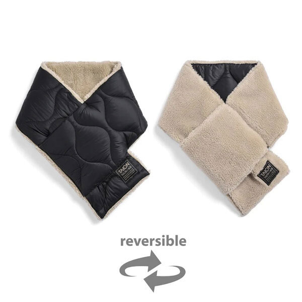 > < ブラック×ベージュ > タイオン TAION ダウンマフラー リバーシブル ダウンマフラー ソフトシェル TAION-R201ALSML