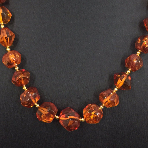 - 1円 金具 K18 琥珀 コハク アンバー ネックレス 全長約61cm 約45.5g アクセサリー ファッション小物 A20880