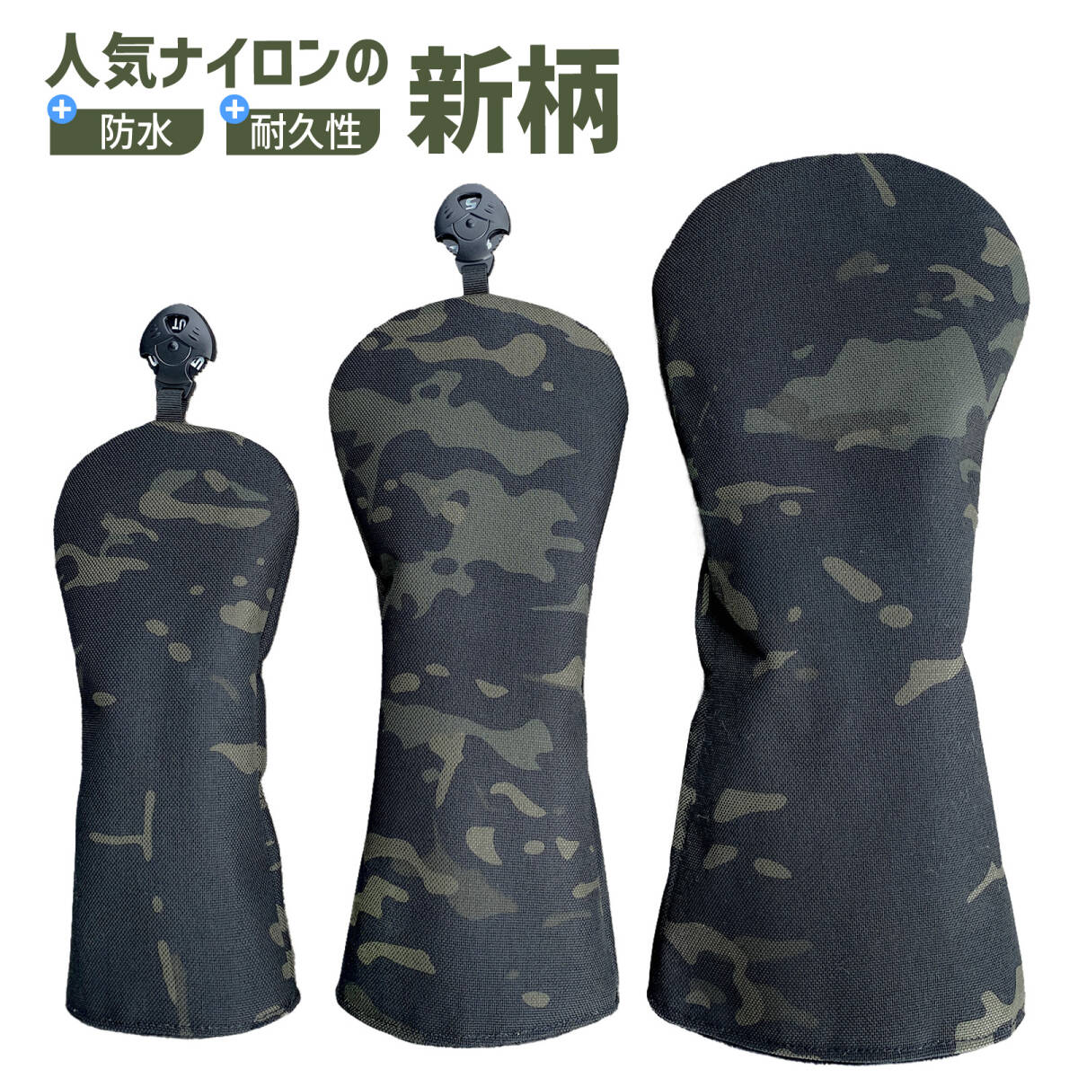 - 【WAKAE GOLF】ヘッドカバー ユーティリティ フェアウェイウッド ドライバーカバー UT 防水仕様 迷彩黒ナイロン 単品 迷彩02