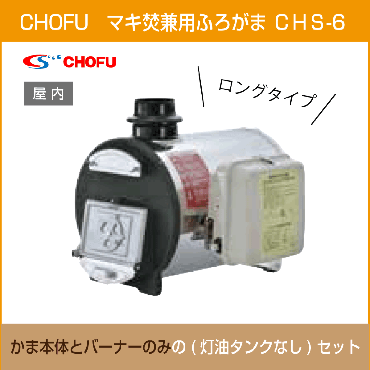 > マキ焚兼用ふろがま 焼却兼用釜 CHS-6 ロングタイプ 本体・バーナー2点セット(灯油タンクなし) CHOFU 長府製作所