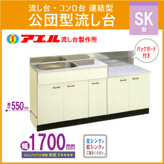 > 公団流し台 連結型流し台(バックガード付) 170cm SK型 SK-1700,BG700 アエル流し台製作所