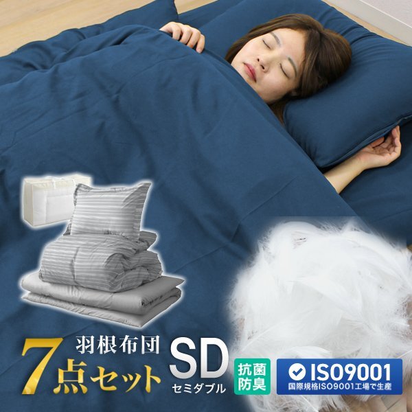 - 羽根布団セット セミダブル 寝具 7点セット 敷布団 敷布団カバー 掛け布団 掛け布団カバー 枕 枕カバー 収納 新生活 ストライプグレー