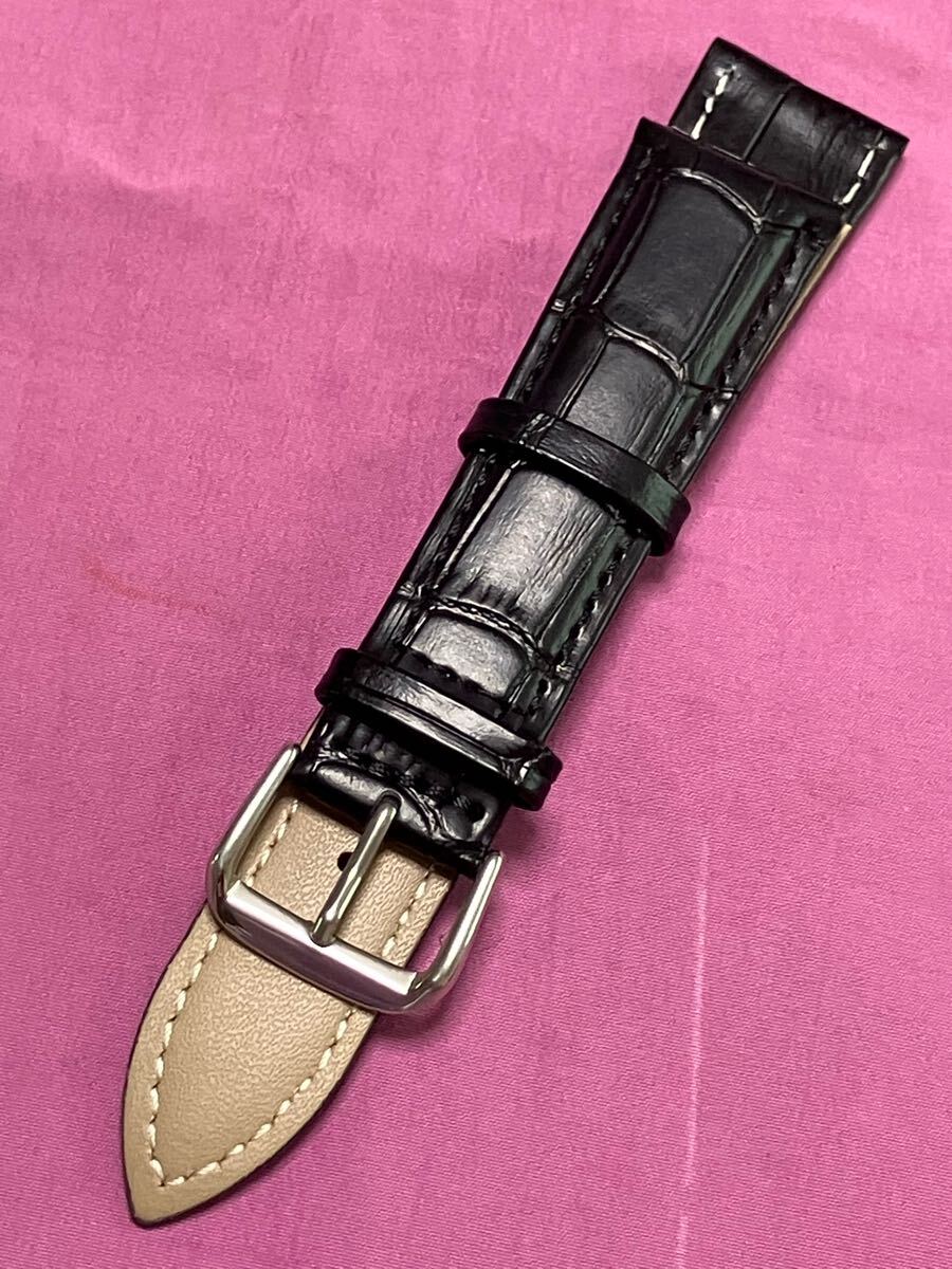- 25★黒色21㎜ 本革押型 時計ベルトバンド 新品即決 同梱可能★25
