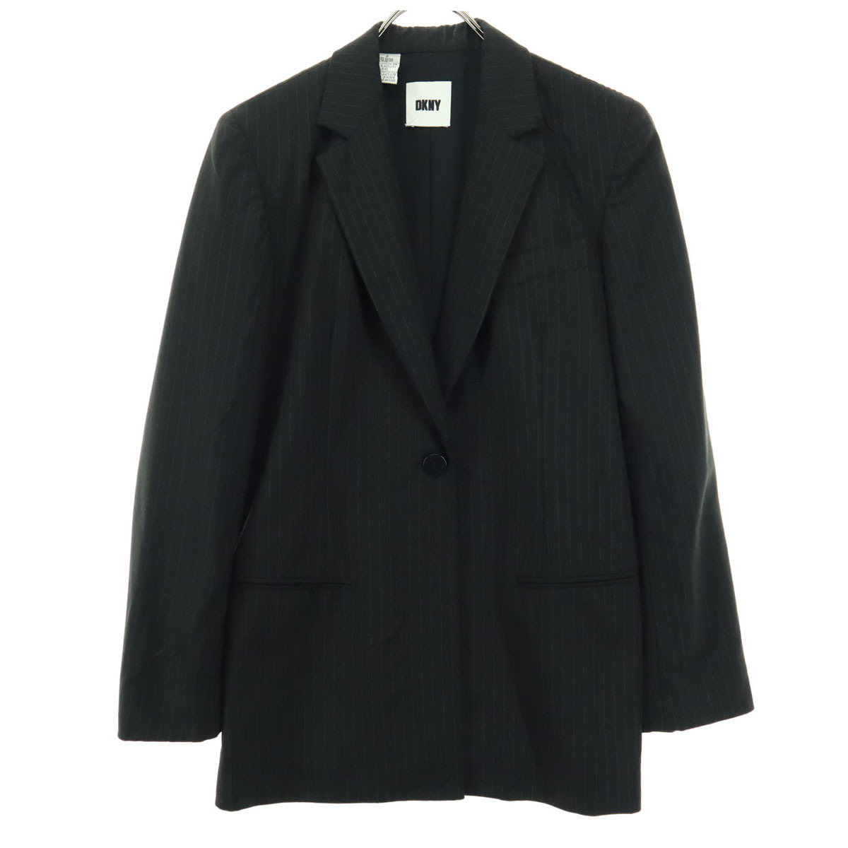 - DKNY DONNA KARAN NEW YORK ダナキャランニューヨーク ストライプ柄 長袖 テーラードジャケット 2 ブラック レディース