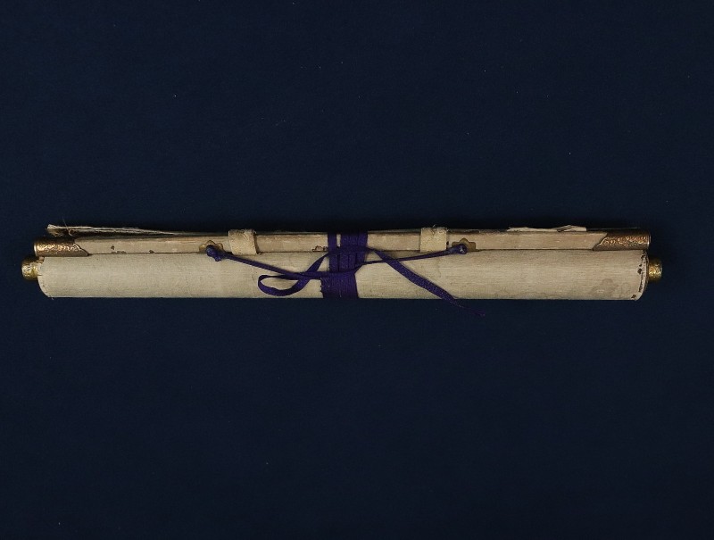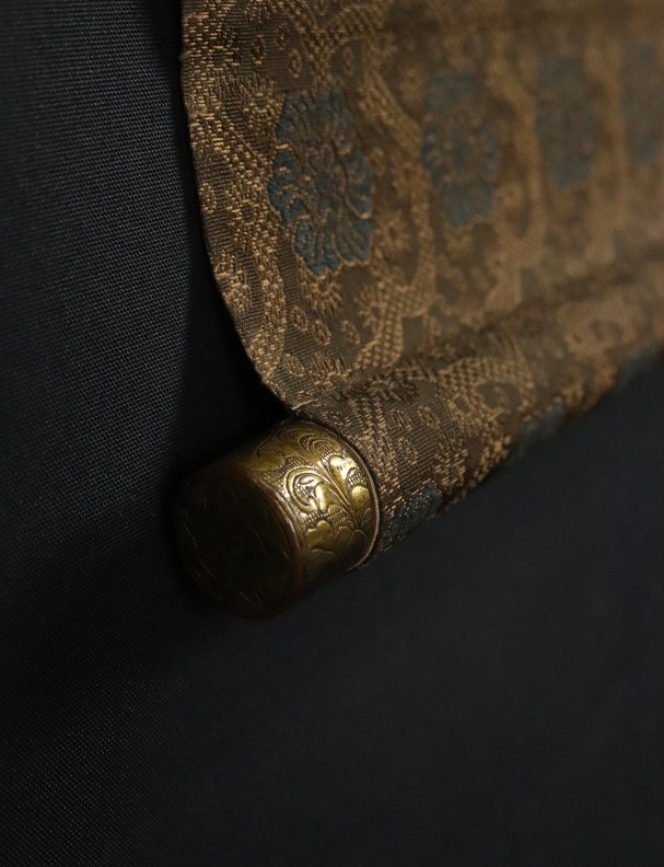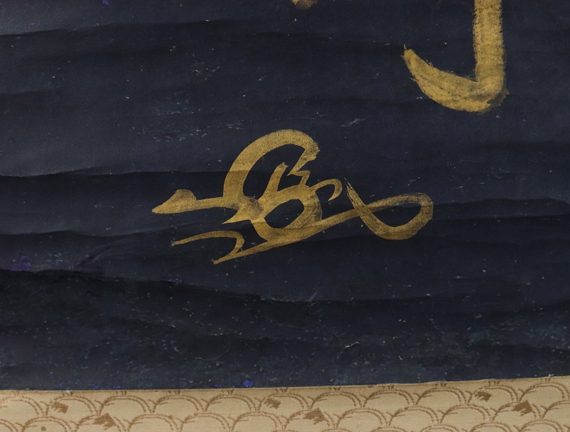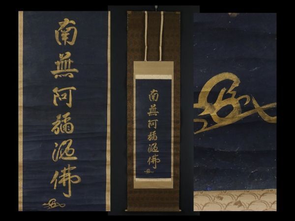 - 11011■【真作】 書 六字名号 肉筆 紺紙金泥 仏教 南無阿弥陀仏 掛軸