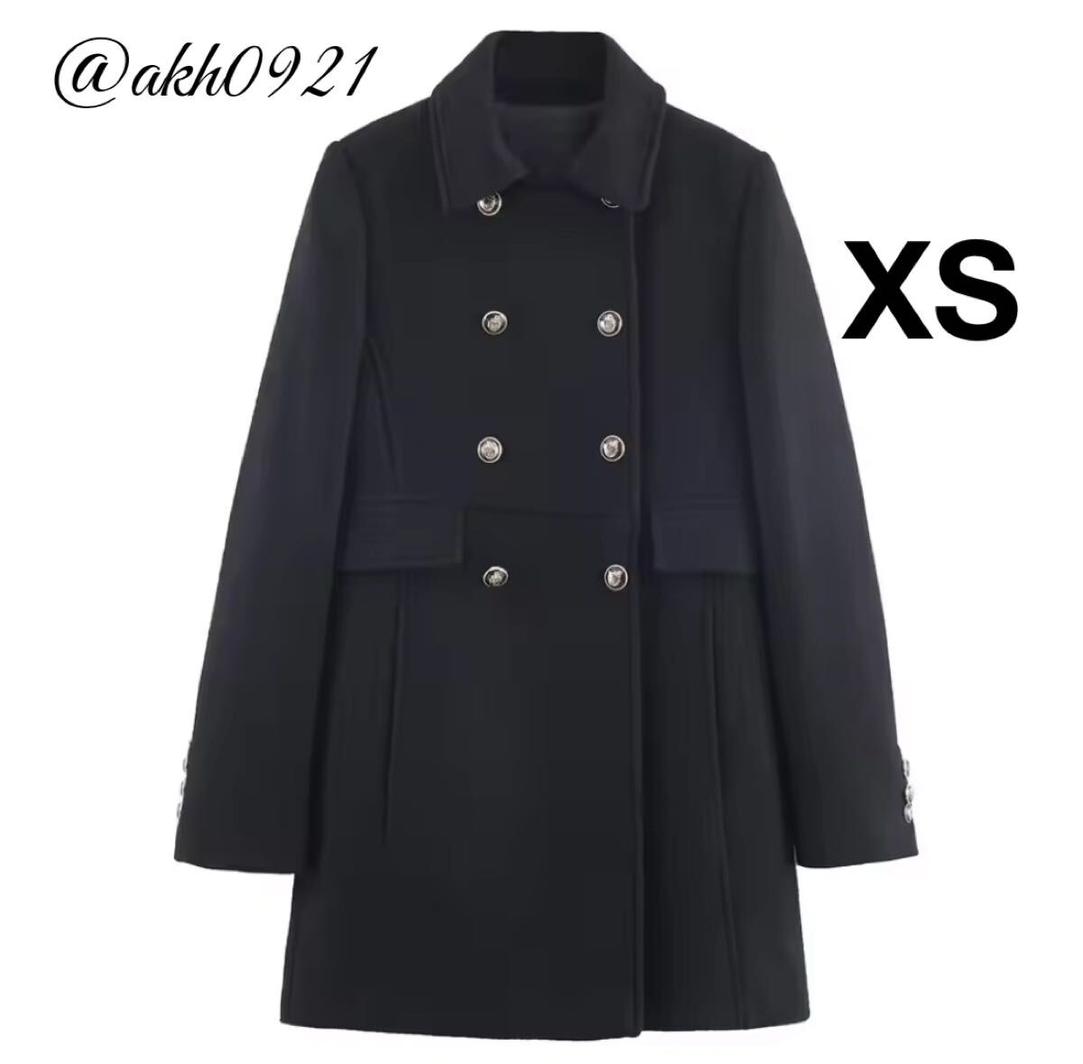 - 新品未使用★2025 A/W 秋新作★vintage ヴィンテージ レトロ black ダブルボタン コート アウター XSサイズ レディース★ZARA 好きな方に
