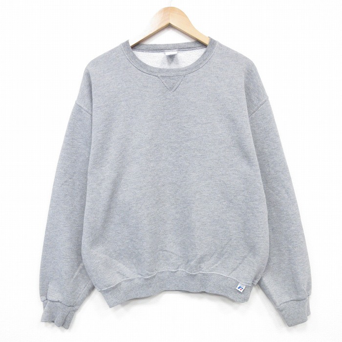 > L/古着 ラッセル 長袖 スウェット メンズ 00s 無地 クルーネック 薄グレー 霜降り 25oct02 中古 スエット トレーナー トップス