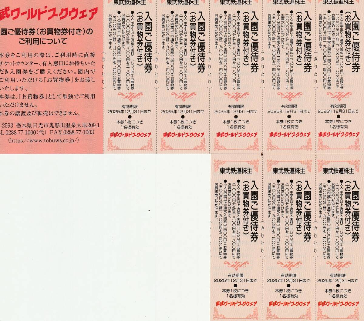 - 東武鉄道★株主優待券★東武ワールドスクウェア★ご優待割引券★8枚セット★即決
