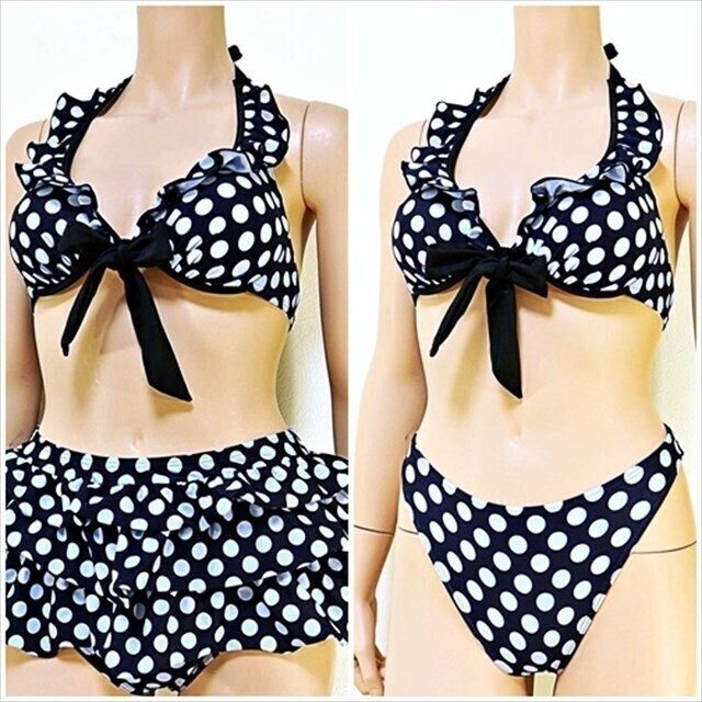 - PE3-Y39//クラシカルでガーリーなドット柄☆元気なイメージを強調☆ホルターネック/フリルの3段スカート風ビキニ3点セット※▲