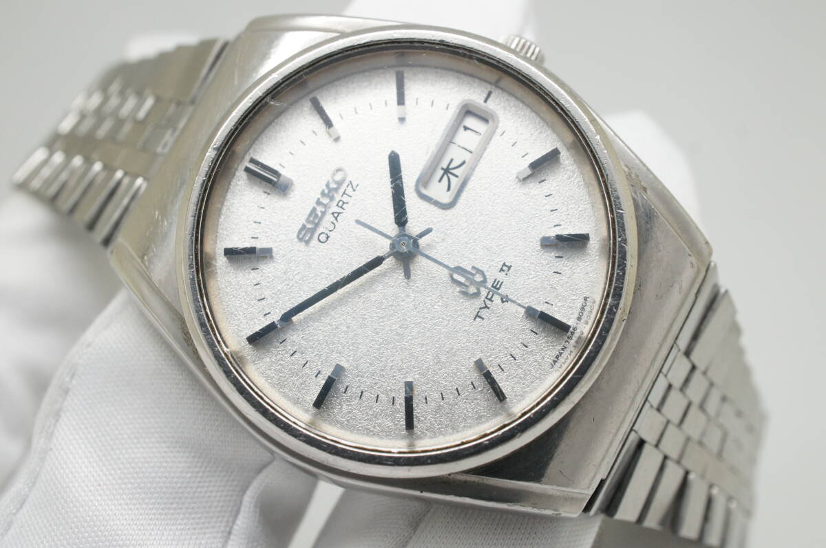 > J11●作動良好 SEIKO セイコー TYPEⅡ タイプⅡ 7546-8080 1977年製 ラウンドケース型 デイデイト メンズ腕時計 シルバー クォーツ