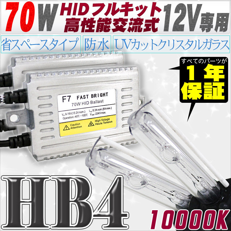 - 高性能 HIDキット 70W HB4 10000K 【交流式バラスト&クリスタルガラスバーナー】 12V用