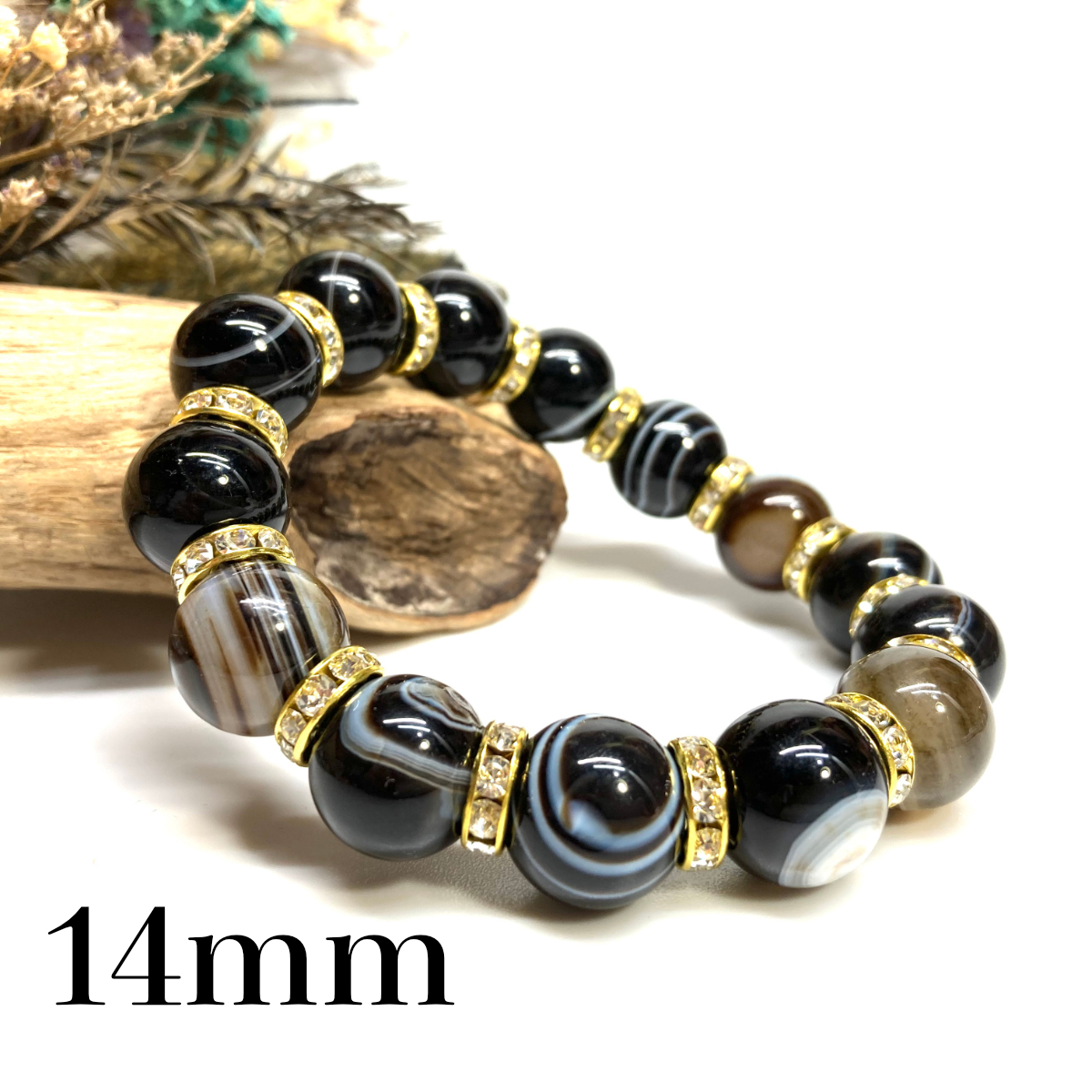 > パワーストーン ブレスレット チベットアゲート(天眼石) 14mm 天然石ブレス (ゴールド) 浄化 メンズ 男性 プレゼント 14ミリ