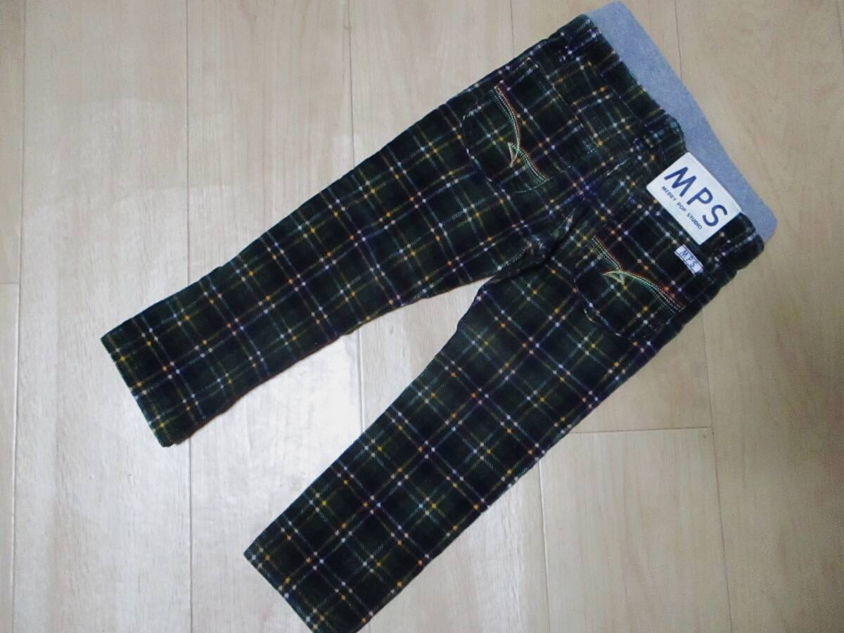 - MPS・ウエストゴムのチェック柄ストレッチコーデュロイパンツ・サイズ100㎝