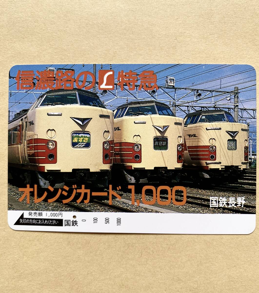 - 【使用済】 オレンジカード 国鉄 信濃路のL特急 あずさ号 あさま号 しなの号
