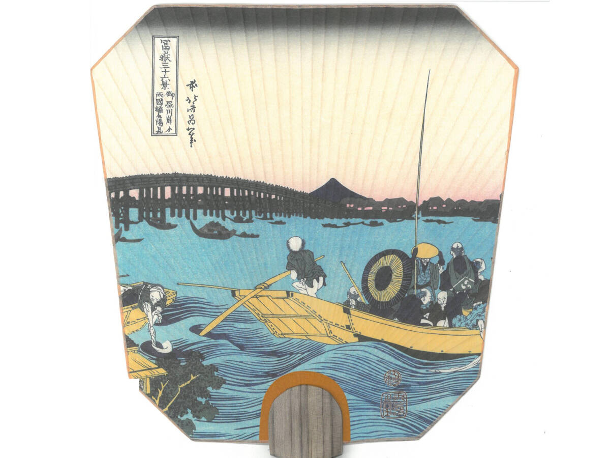 - 送料450円★都うちわ(京うちわ)★葛飾北斎「富嶽三十六景 御厩川岸より両国橋夕陽見」