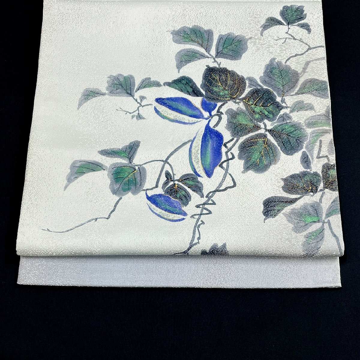 - 着物月花 齋藤一騎 IKKI流 銀花仙 銀通し ぼかし染 品のある花 袋帯 お太鼓柄 正絹 銀糸 ガード加工 ob7122