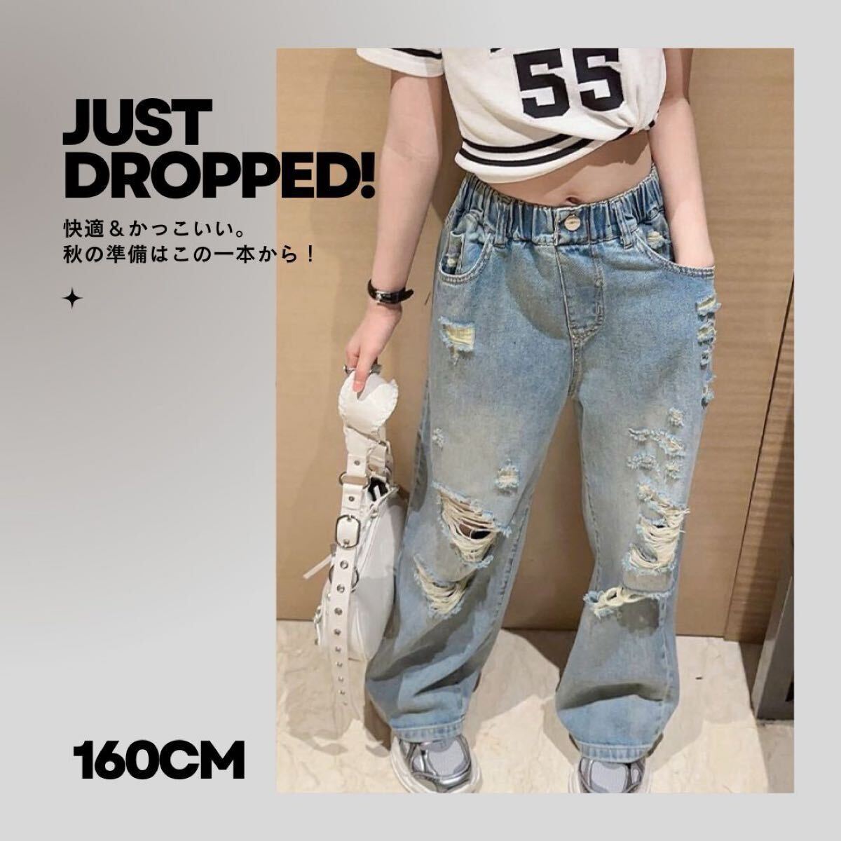 - 【160cm】女の子 ダメージデニム ゆったりシルエット