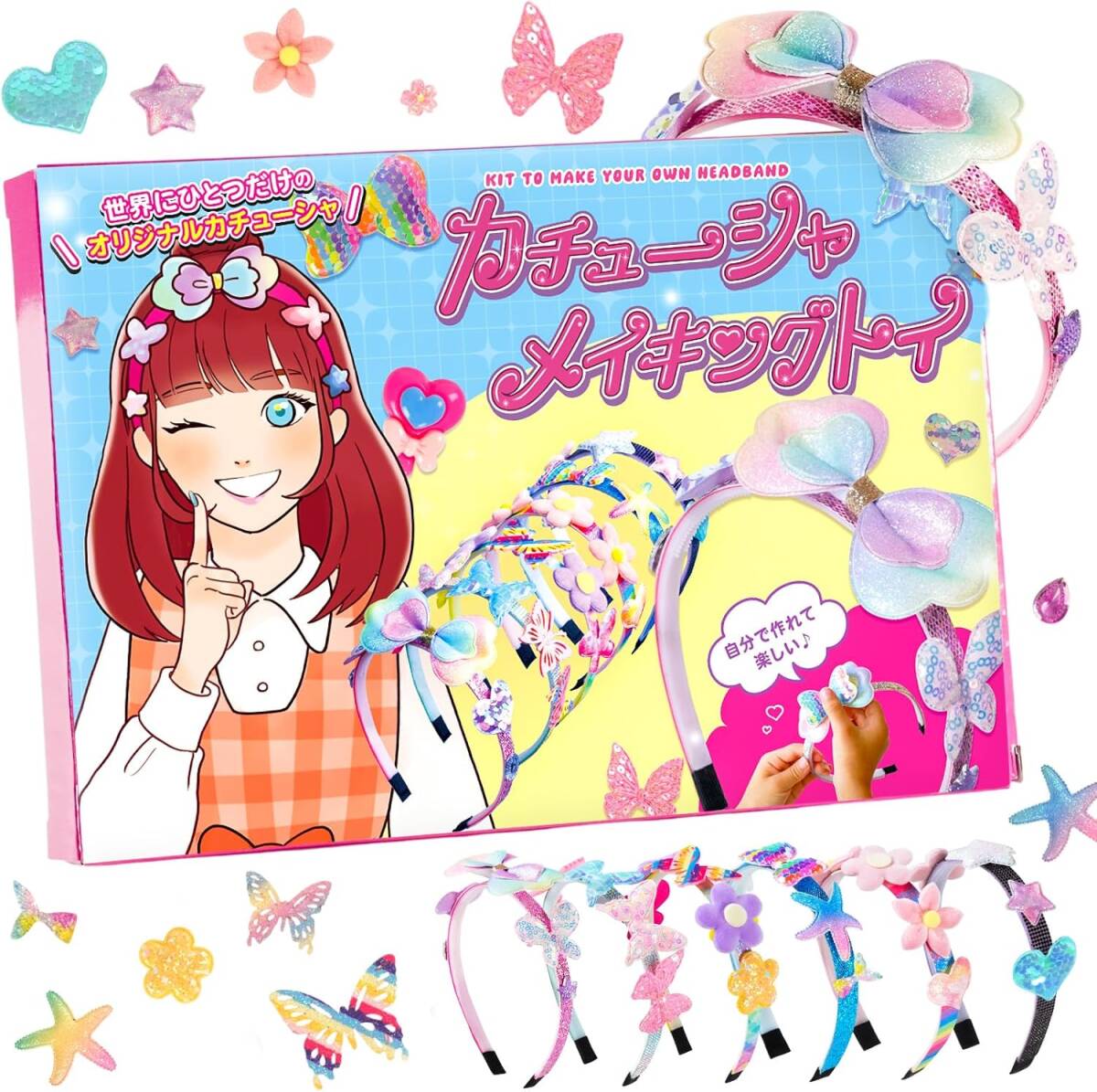 > カチューシャ メイキングトイ【星・花・ハート・沢山のデコパーツ】日本企画 女の子 手作りキット 子供 デコパーツ 工作キット