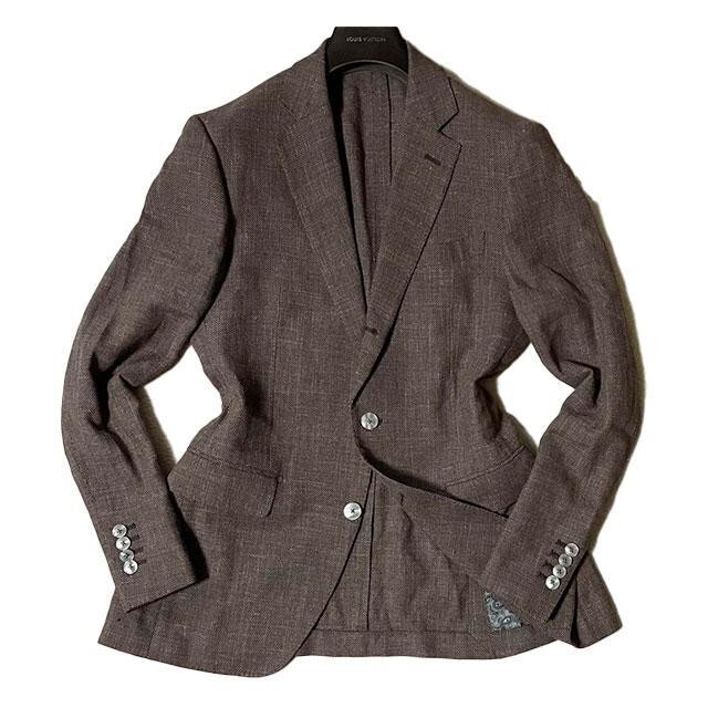 > スーツセレト×伊・Alfredo Rodina生地 ライトツイードジャケット ブラウン Y6(T175) 美品 バーズアイ K257