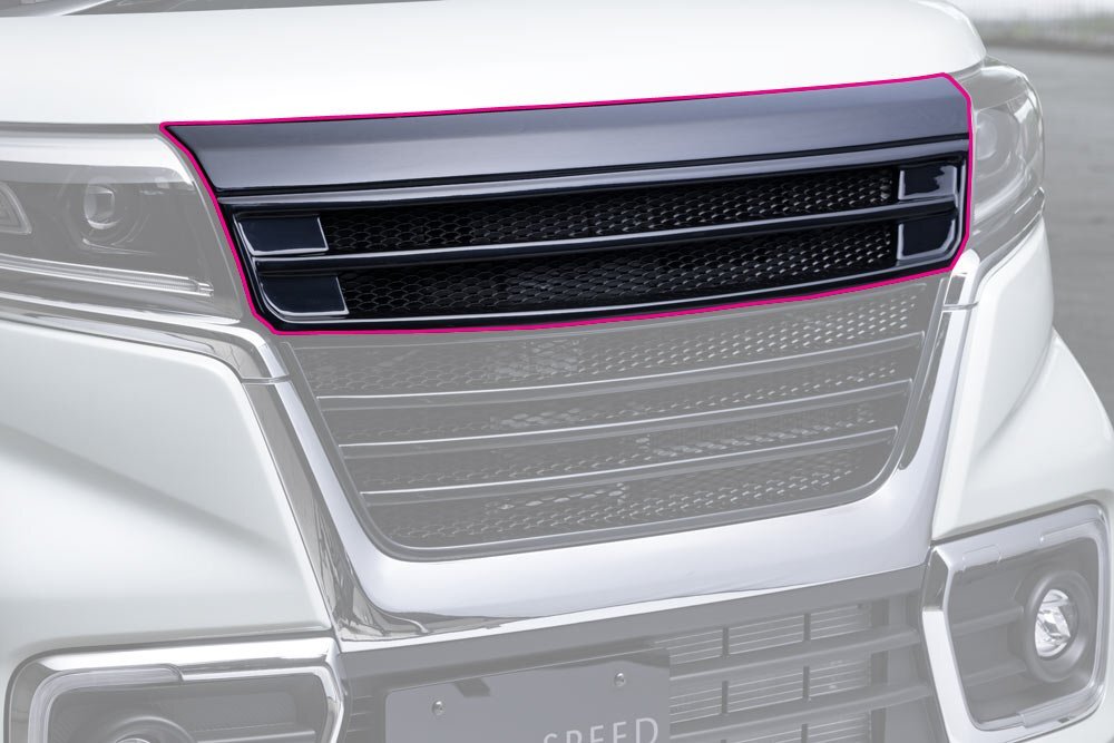 - M'z SPEED フロントグリル アッパー ブルーイッシュブラックパール (ZJ3) FRP スペーシアカスタム MK53S H29.12~R3.11