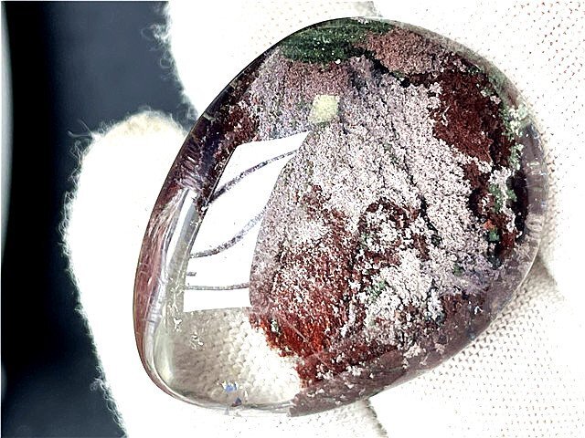 「庭園水晶」別名「幽霊水晶」と呼ばれる。この水晶は、「金運を引き寄せる」事ができることから、ビジネスに携わる人々のお守りとして古来より珍重されている。この水晶は、「向上心の発揚」「開放感の高揚」「財を集める能力の向上」などの効力があると信じられてきた金運向上;硬度:7