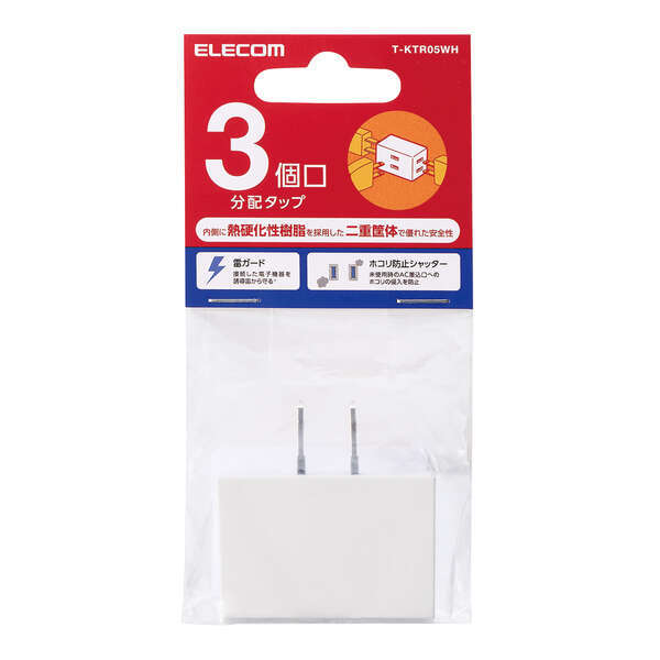 - トリプルタップ 1つのコンセントを3口に増やせる 雷ガード・ホコリ防止シャッター付きで安全に使えます: T-KTR05WH