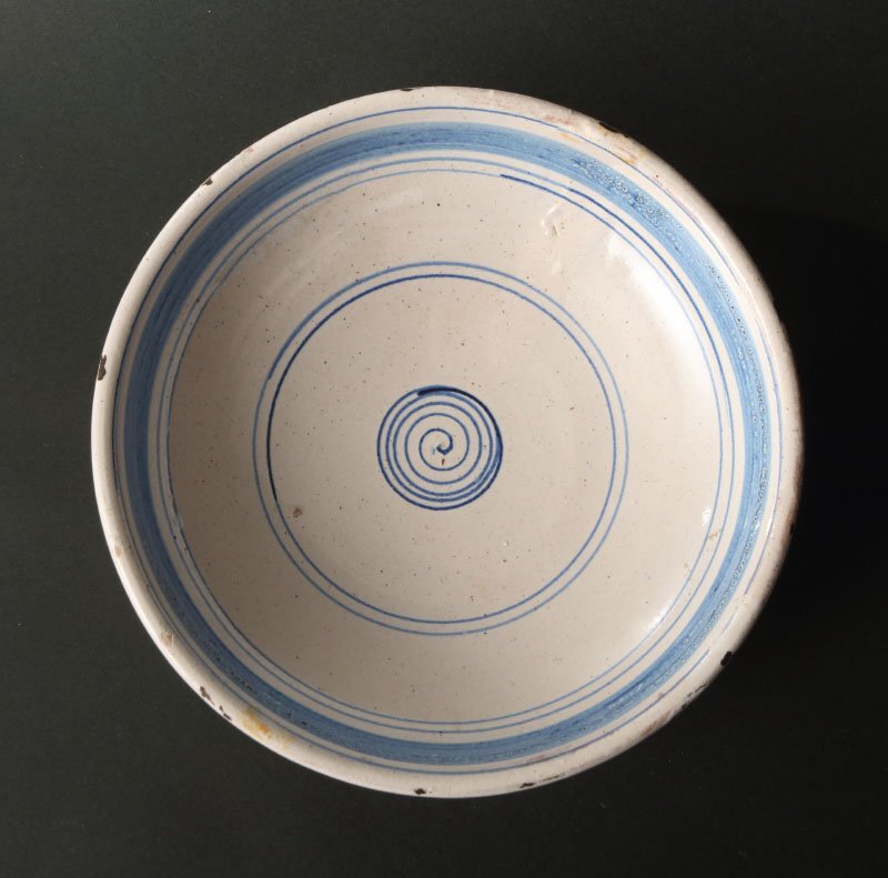 - 【深和】19世紀◆マニセス焼 藍絵輪線文鉢(藍阿蘭陀 デルフト焼 スペイン 菓子鉢 サラダボウル 茶道具 錫釉陶器 マヨリカ ファイアンス)
