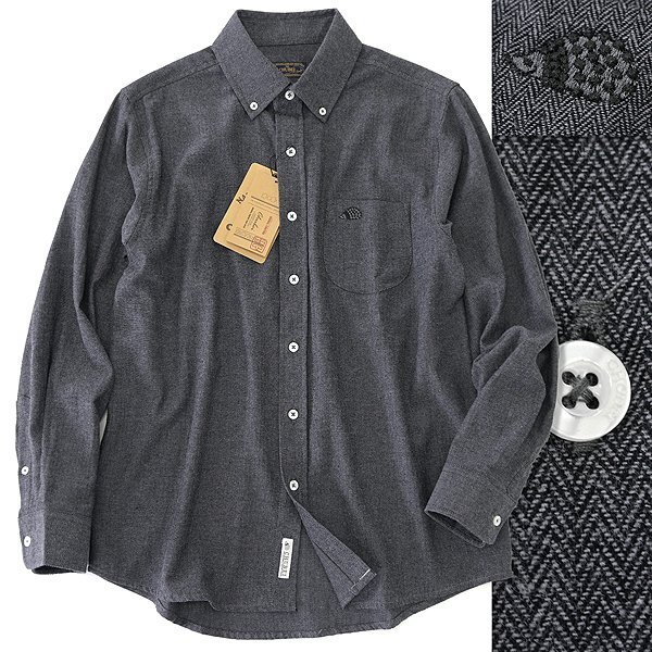- 新品 チュウベイ ヘリンボーン ビエラ ボタンダウン シャツ M 濃灰 【CH1443205_98_M】 秋冬 CHUBEI コットン ハリネズミ ネルシャツ