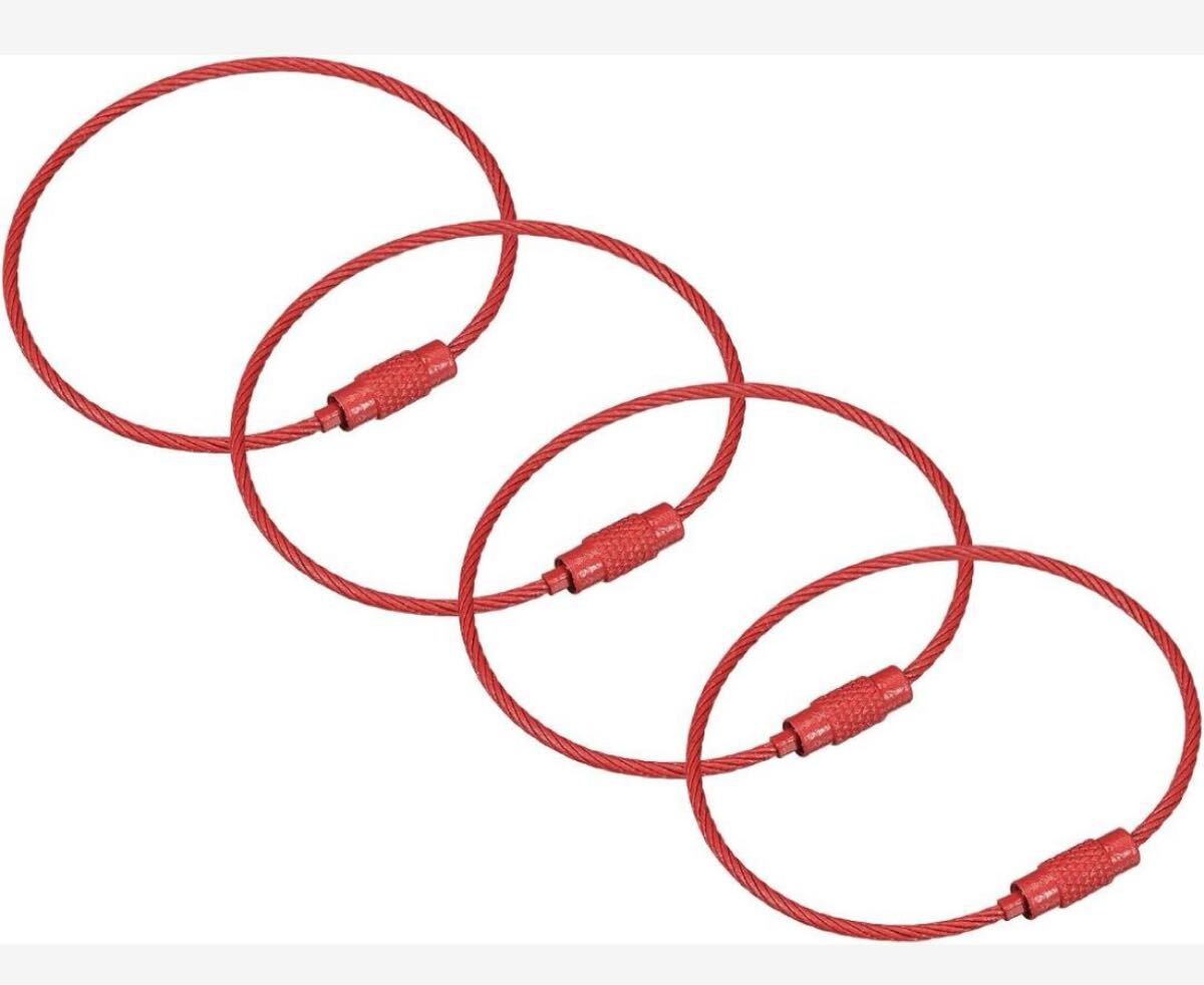 - ワイヤーキーチェーン 4個 160mm 炭素鋼 キーホルダー バッグタグ ラゲッジ 荷物ストラップ レッド