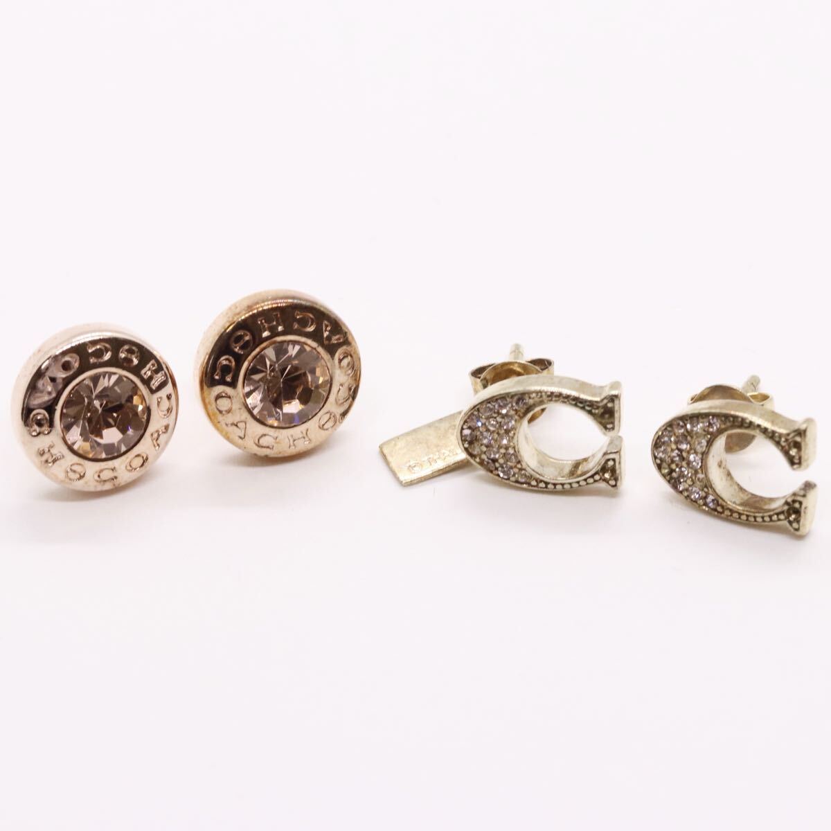 - コーチ COACH 2個セット ピアス ロゴ ゴールドカラー ストーン ラウンド オープンサークル ★57