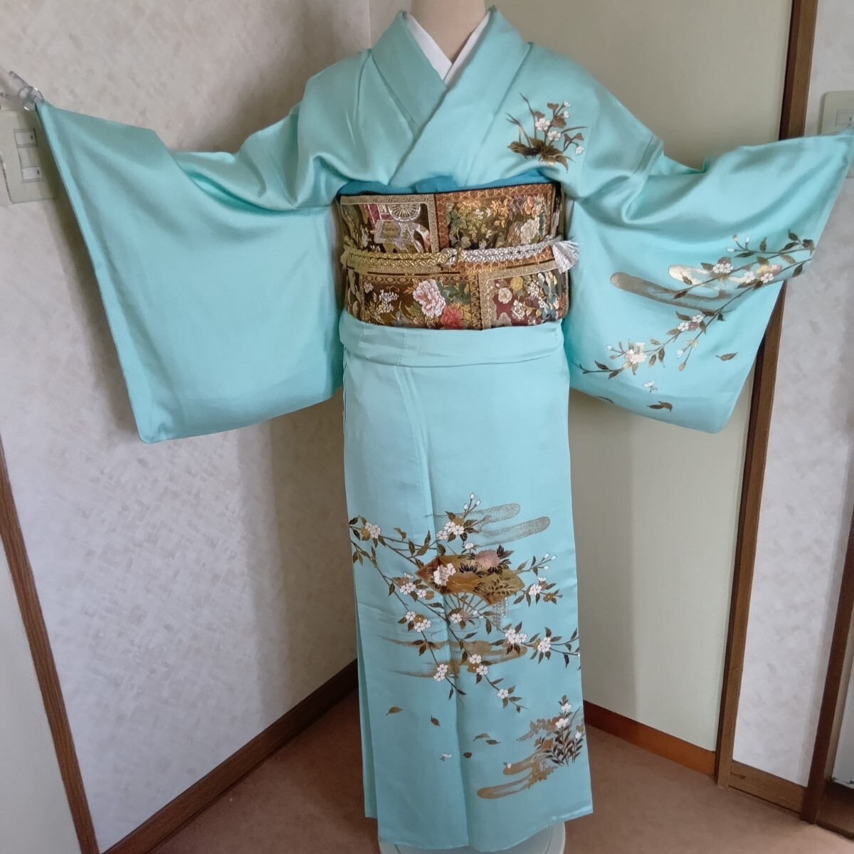 - 訪問着(袋帯つき)エ霞文様 扇花文 金彩 結婚式 卒業式 入学式 未使用