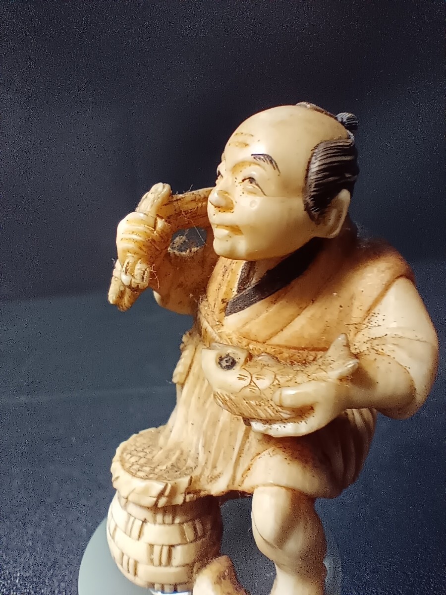 - 桜井英之 在銘 「魚を商う漁師図 」昭和 現代根付 5円スタート