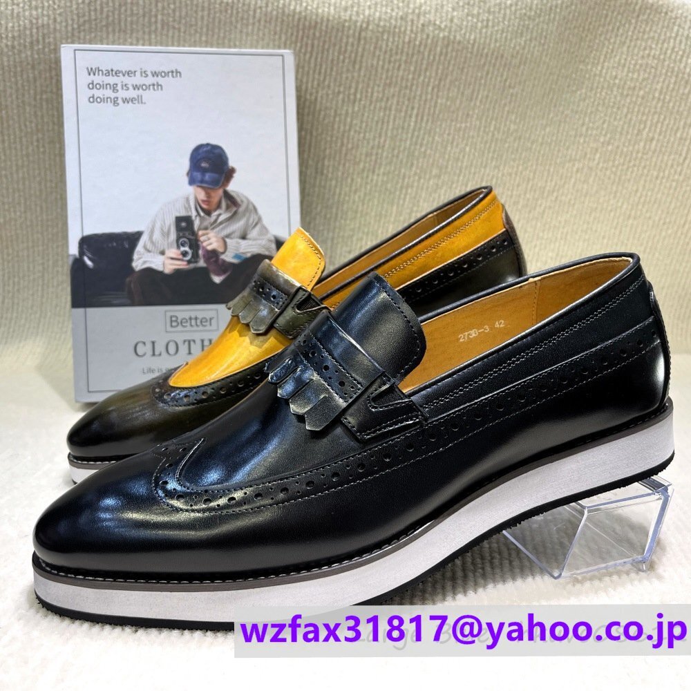 > スニーカー メンズ 高級牛革 ローファー 職人手作り 彫り 紳士靴 革靴 ビジネスシューズ 本革 超軽量 スリッポン ブラック 25.0cm