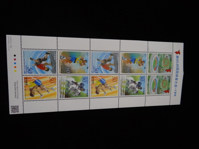 - 平成22年 ふるさと切手 第65回国民体育大会 千葉県 50円切手 記念切手シート 折れあり