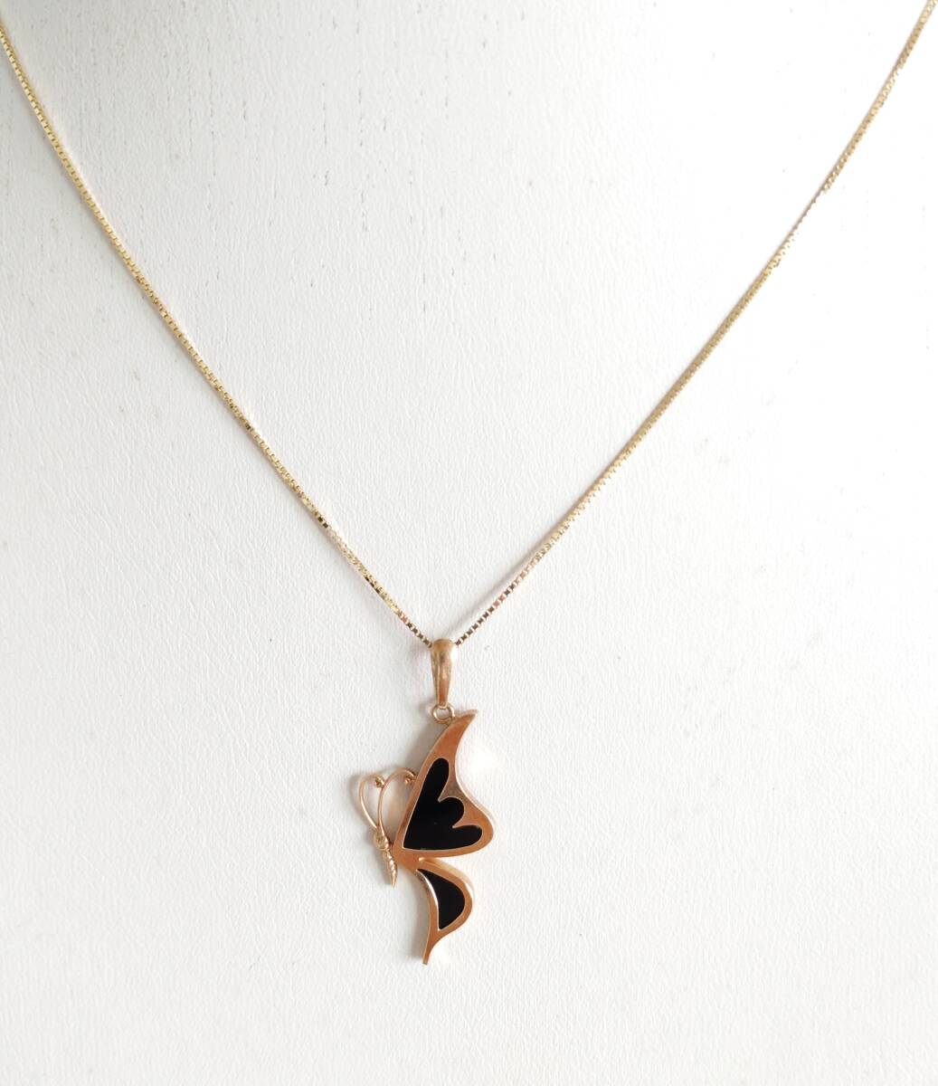 - ゴールドペンダント・蝶々姿・オニキストップ・ゴールドペンダント