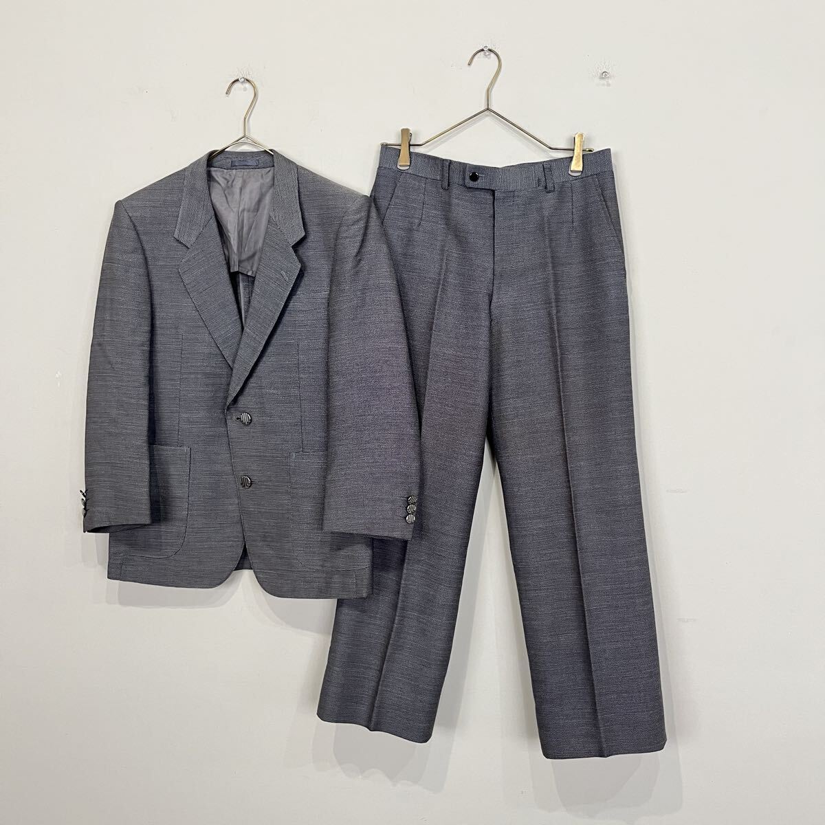 - LANVIN ランバン サマーウール セットアップ スーツ グレー メンズ モヘア混 シングルジャケット ジャケット スラックス ネーム入り