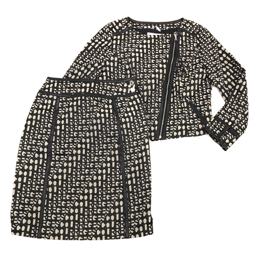 > クレージュ サイズ 38 総柄 ノーカラー ジャケット / 36 タイト スカート セットアップ レディース 計2点 courreges