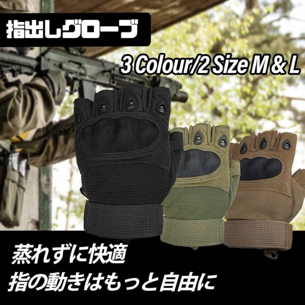 - 指出しグローブ 半指 タクティカル グローブ 指ぬき グローブ サバゲー スポーツ 自転車 アウトドア 登山