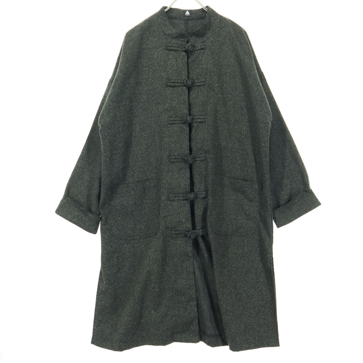 美品 merlot メルロー 長袖 チャイナボタン ロングコート ブラック系 レディース
