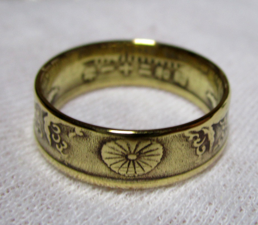 - 【s308】 コインリング☆大型50銭 黄銅貨☆ハンドメイド 15号 昭和二十一年