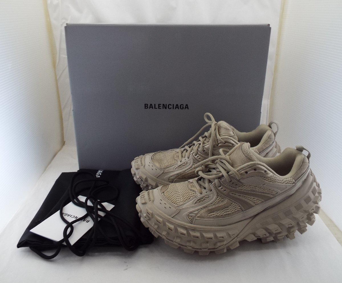 > D676〇BALENCIAGA/バレンシアガ DEFENDER ディフェンダー スニーカー ベージュ 27.5cm 箱付/保存袋付